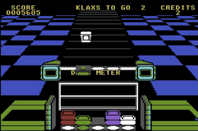 A Klax lényegében a tetris unokatestvére, egyszerű de addiktív. 1990-ben jelent meg a Tengen kiadásában jó sok videojáték masinára, többek között Amiga, Atari, Nintendo NES, DOS stb. A Commodore 64 portját a legtöbben egy 4 játékot felvonultató cartridge válogatásról ismerhetik, amin olyan nagy címek kaptak helyet mint pl. a Fiendish Freddy's, meg az International Soccer. De, különálló játékként is kapható volt lemezen és kazettán is.