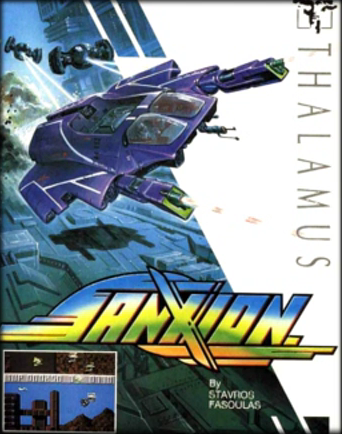 1986-ban jelent meg a Thalamus jóvoltából a Sanxion, ami egy side-scrolling (oldalnézetes) shoot'em up (lövöldözős) játék, sci-fi környezetben. Az eredeti C64 változatot 1989-ben követte egy ZX-Spectrum kiadás is. Egyszemélyes játék. Zenéjét az általam nagyra tartott Rob Hubbard szerezte, és tulajdonképpen a köszöntő képernyő alatt Prokofiev "Dance of the Knights" klasszikusát változatta SID zenévé (mostanában egy reklám aláfestőjeként is futtot kis hazánkban).