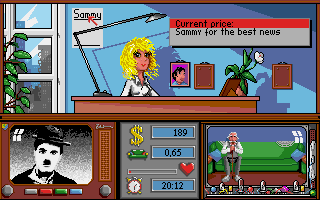 A szoba bal oldalán három kapcsoló van (piros, zöld, kék), és egy-egy hír kategóriát jelölnek. Alapértelmezés szerint csak a piros (kb. pletyka) van bekapcsolva. Amelyik kategóriát bekapcsolod, olyan új hírek közül tudsz majd válogatni hogy műsorba kerüljön. Híradó minden órában van, és a nézők - értelemszerűen - szeretik a változatosságot :) Minden hírért, de még a kategóriákért is fizetni kell, a hírszerkesztésről dönts a rendelkezésre álló pénz mennyiségének függvényében. Kattints az írógépre, ahol fogd és vidd módszerrel tudod a bal oldalról az új (és régi) híreket a jobb oldali 3 négyzetbe húzni. A jobb oldali hírek lesznek leadva a következő híradótól fogva amíg ki nem cseréled őket.