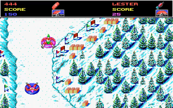 Borzasztó voltam benne mindig. Ezt a mini-játékot csak kettesével lehet játszani (egyszemélyes módban a gép beszáll). Egy felfújható "szánkón" (így nevezték el valamiért) kell egy hegycsúcs tetejéről az aljára a célig eljutni. Út közben persze megannyi akadály van, sőt a két játékos egymással is kiszúrhat - szó szerint. Fel lehet szedni különböző tárgyakat amivel kipukkaszthatod a versenytársad gumiját. De tapaszokat is fel lehet szedni amivel megerősíted a saját gumid.